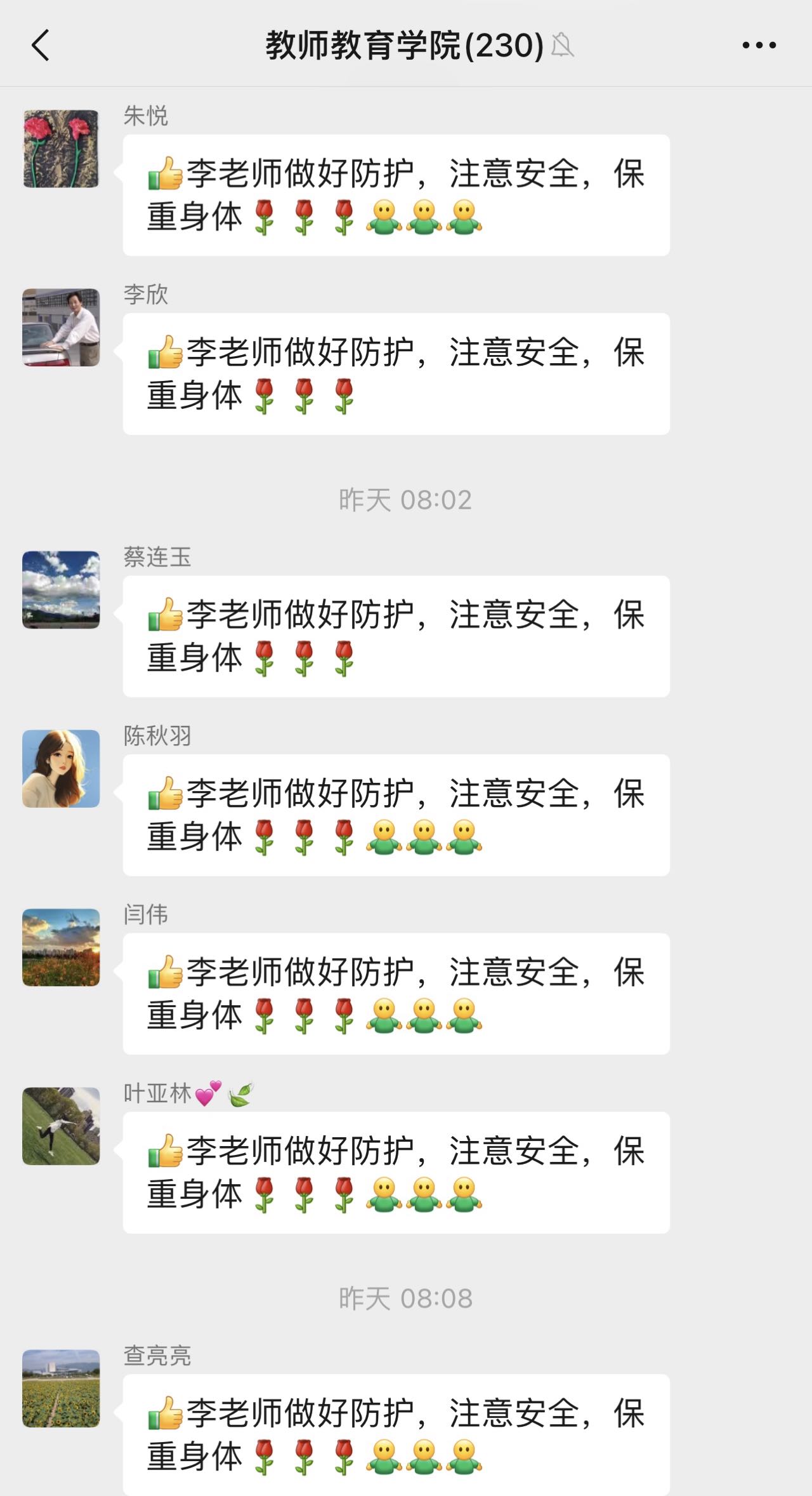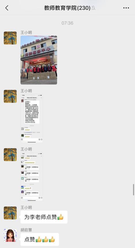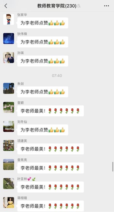 图为教师tyc1286太阳集团教师工作群对李鸣华老师的关心和点赞