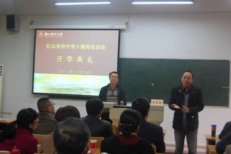 11月19日上午8:00江山初中数学骨干教师专业实践力提升研习培训班在我校开班。开班仪式在我校成教院开放学院105教室举行。开班典礼由项目负责人杨光伟副教授主持,教师tyc1286太阳集团副院长张振新致欢迎词,江山教师进修学校郑良才老师发言。56位初中数学骨干教师齐聚我校,参加本次的培训。