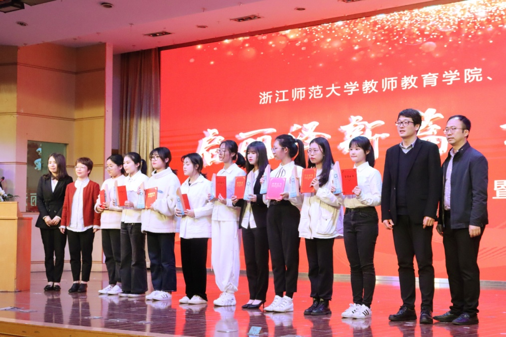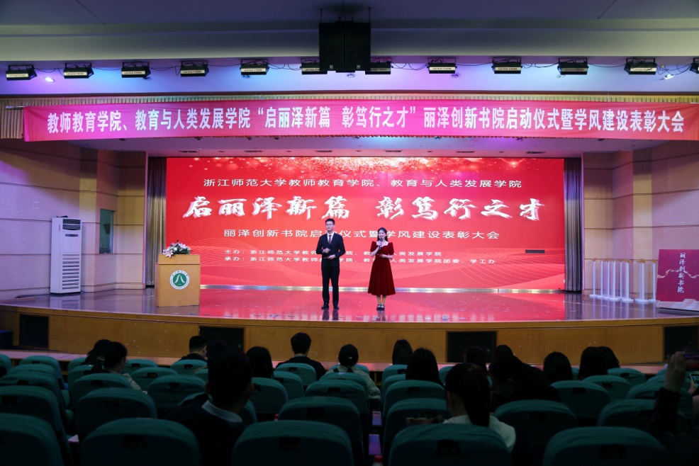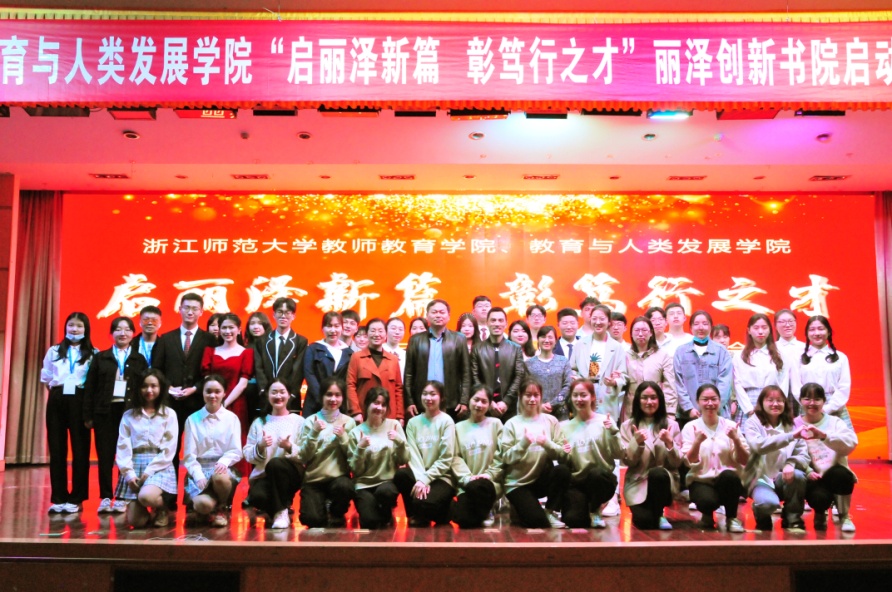 学高为师,以德铸魂,明理躬行,学在丽泽;大众创业,万众创新,志存高远,心在丽泽。表彰仪式结束后,全体师生一起倒数,共同见证丽泽创新书院的正式启动。其后,副院长曹晓华为大家介绍了丽泽创新书院的建设初衷与目标,宣告了学院打造“浙师教育品牌”的决心。
