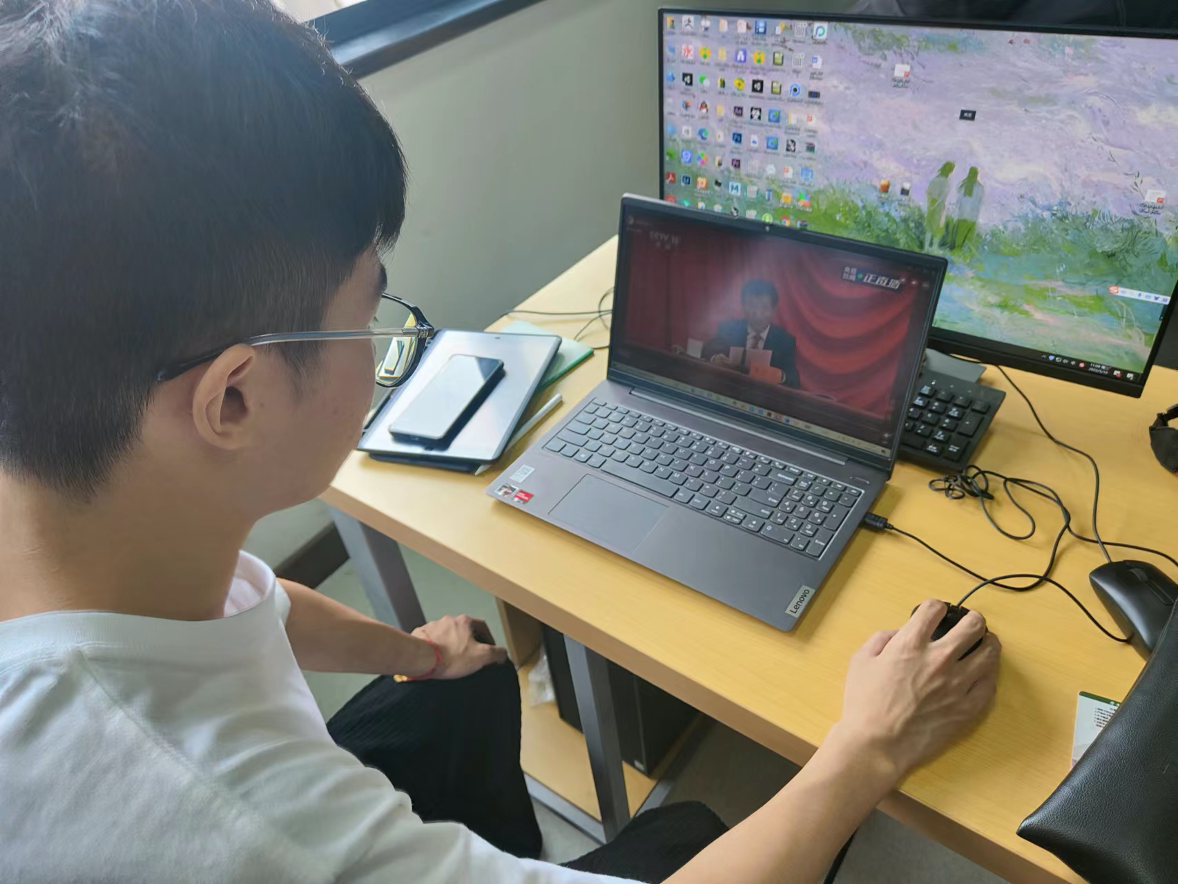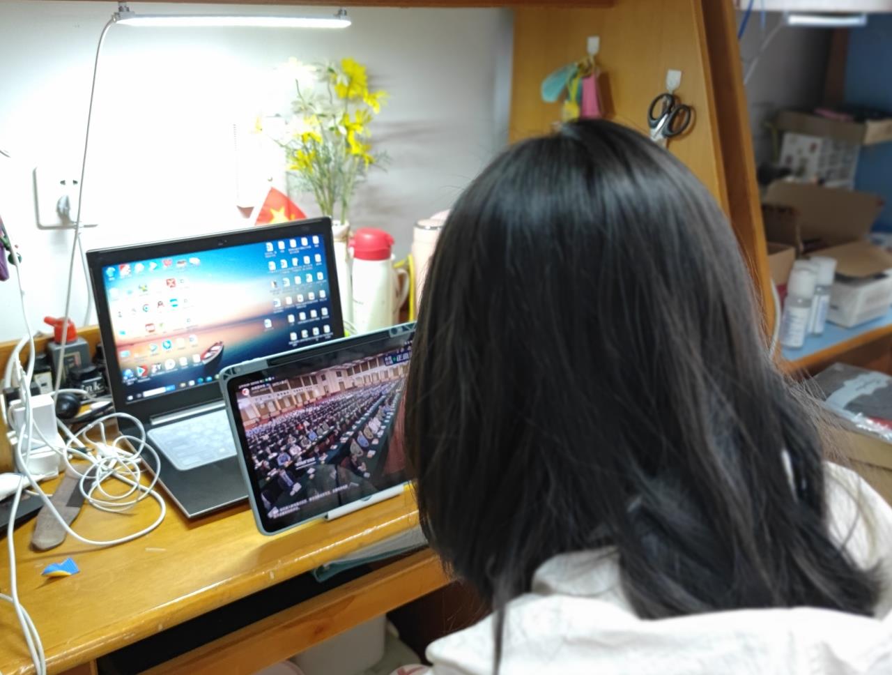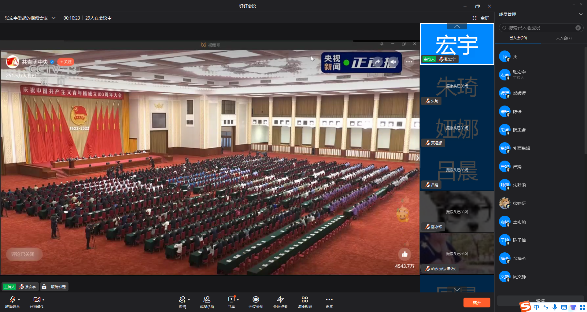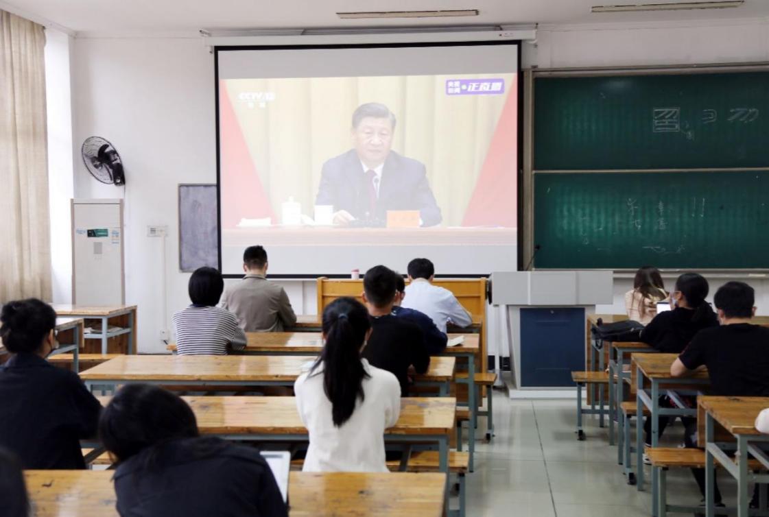 tyc1286太阳集团高度重视,周密部署、认真组织全系统团员青年、团干部第一时间通过多种形式,观看庆祝大会现场直播。学院团委积极响应,学院书记叶青老师参加学校统一集中学习,学工办辅导员老师张文潇、蒲伟军、王萌,教育研会代表,本科学生会部门代表于17幢216共同观看大会直播。