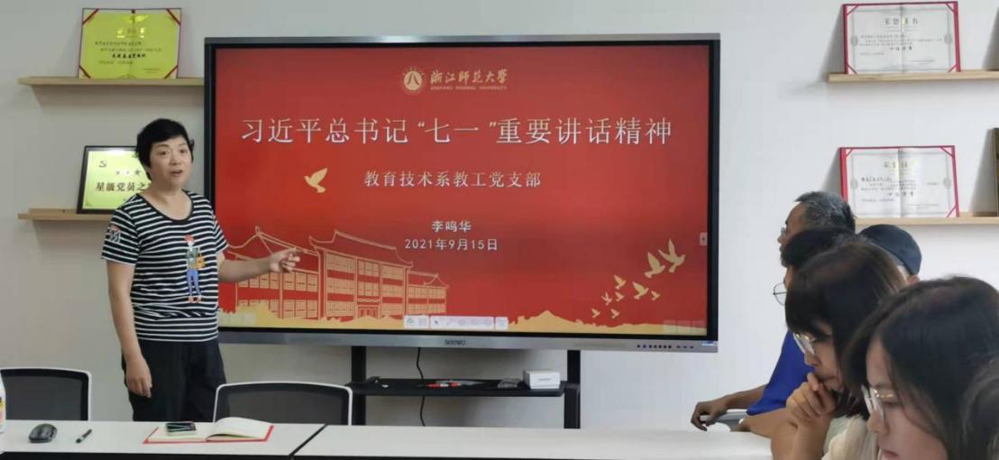 在教育技术系里,党员教师一共占了73%。在党建引领下,他们一起实现了支部建设与专业发展、人才培养的双融合、双促进。近三年来,教育技术学系已获批国家一流专业、4门国家一流课程,师生党员已获了得70多项国家级和省级荣誉、成果。