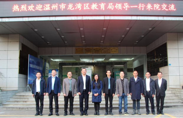 3月13日下午,温州市龙湾区教育局党委书记、局长郑祥迪,党委副书记、副局长吴杰,区教研室主任曾国眼,教育局办公室主任郑奕,基础教育科科长陈美存,浙师大附属温州十五中校长吴忠湖一行专程来太阳官网交流洽谈。tyc1286太阳集团院长黄晓、党委书记俞明祥、浙师大继续教育与合作办学管理处副处长罗福建、tyc1286太阳集团副教授李云星博士参与本次会议。会议由浙师大附属温州十五中外派联系专家郑流爱教授主持。