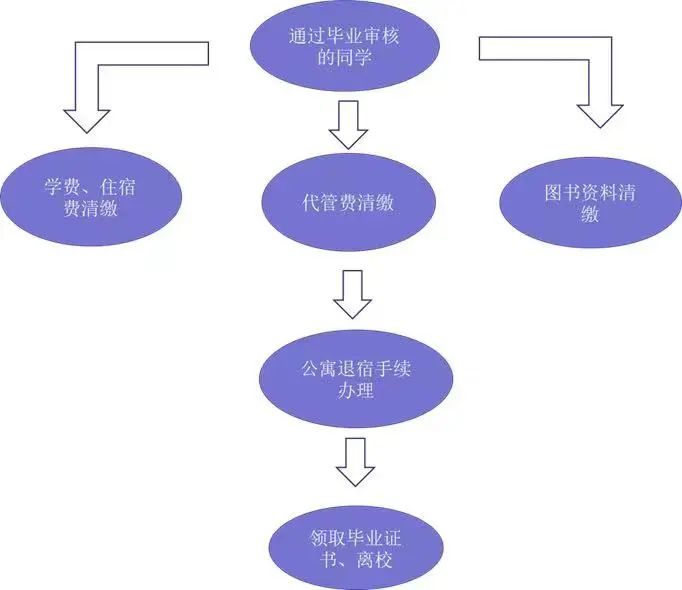 上缴学生证加盖留念章——确认离校系统流程办结——领取毕业证书、学位证书——核对无误签名——领取教师资格证书(第一批取得教资的同学)——核对无误签名——领取教师职业能力证书(参加校考合格的同学)——核对无误签名