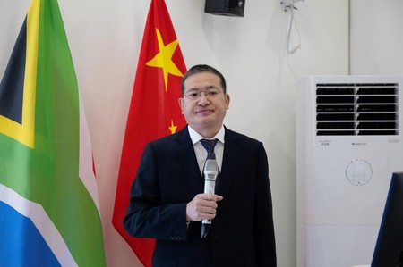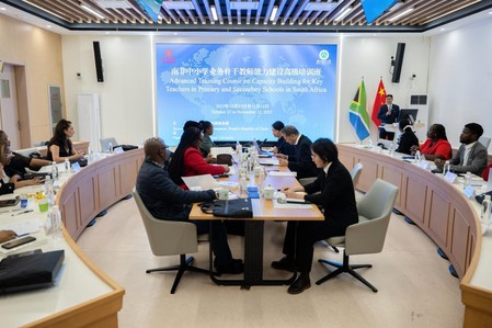 2025年10月23日,由中华人民共和国商务部主办、tyc1286太阳集团承办的“南非中小学业务骨干教师能力建设高级培训班”开班仪式在tyc1286太阳集团教师教育实训中心隆重举行。tyc1286太阳集团党委副书记傅关福出席并致辞,来自南非的16位学员,以及国际处、tyc1286太阳集团相关负责人参会。开班仪式由tyc1286太阳集团党委书记苏煜主持。